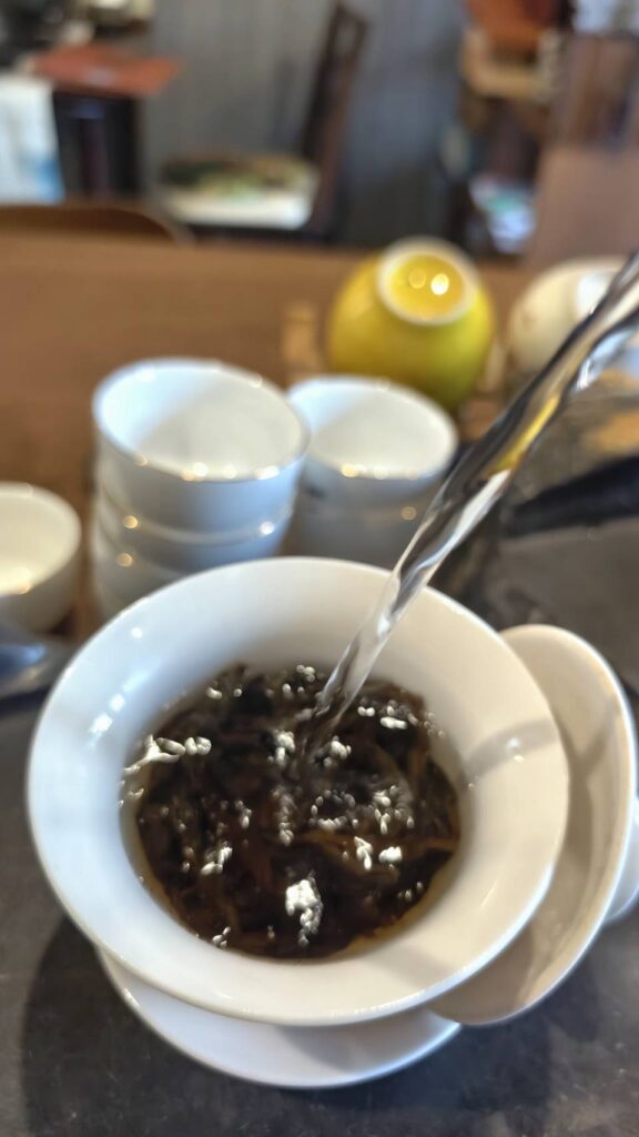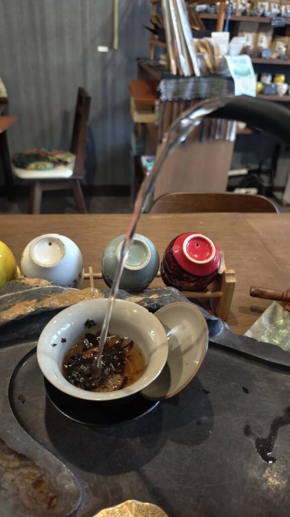 茶芸における注水は、本来「見せる」ための動作として体系化されてきた。一方で、泡茶はあくまで味を最優先する実務であり、注水は抽出条件の一部にすぎない。この二つは似ているようで、目的が異なる。
