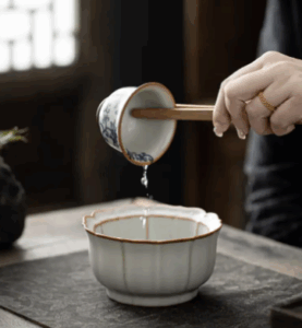 蓋碗や茶壺の縁に沿って回し注ぐ。